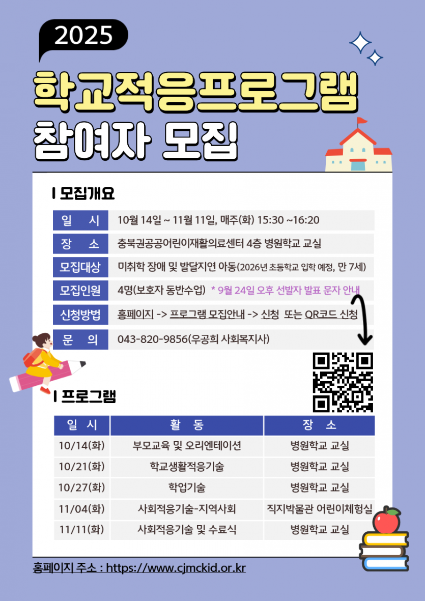 ▶ 2025년 공공재활프로그램 학교적응프로그램 참여자 모집 안내